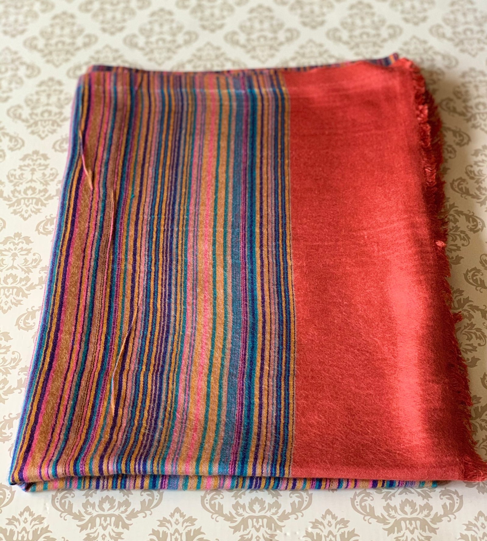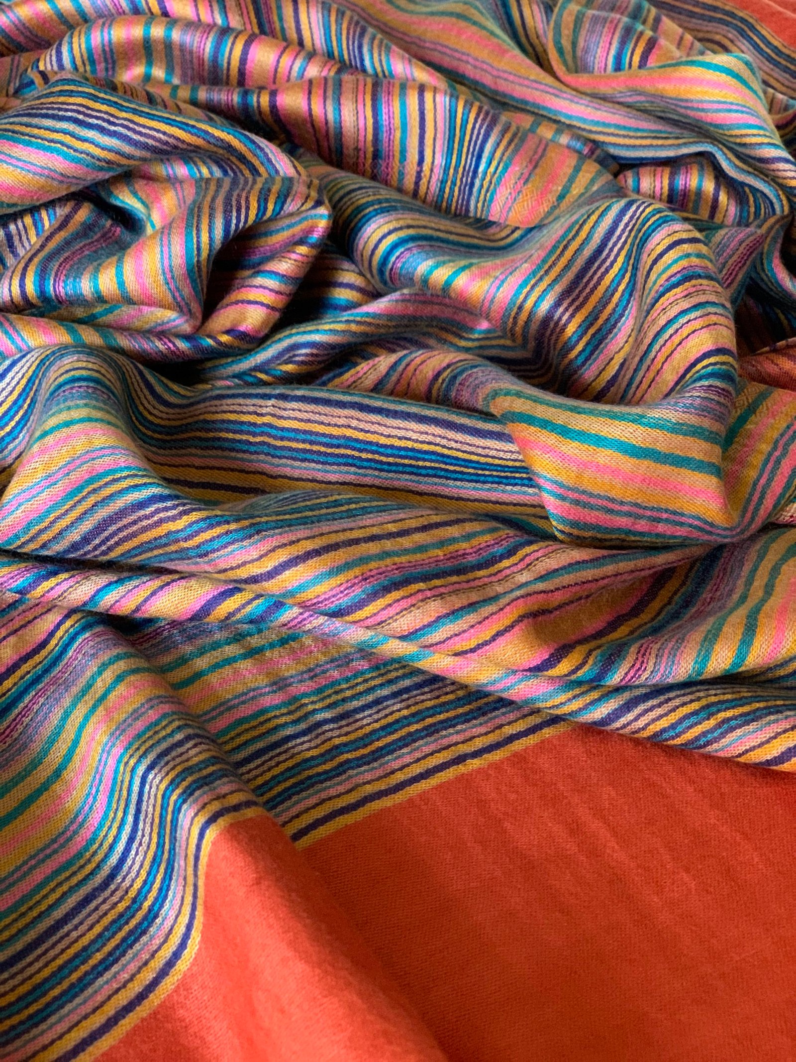 Silky Shawl with multi colour stripes design – Burnt Orange.